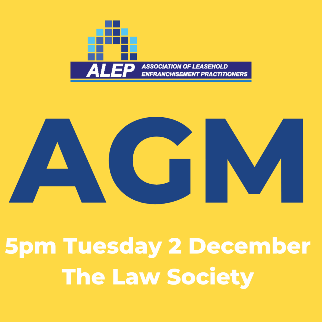 The Association of Leasehold Enfranchisement Practitioners’ Annual General Meeting (AGM) will take place on Tuesday 2 December 2025 at 5pm at the Law Society.